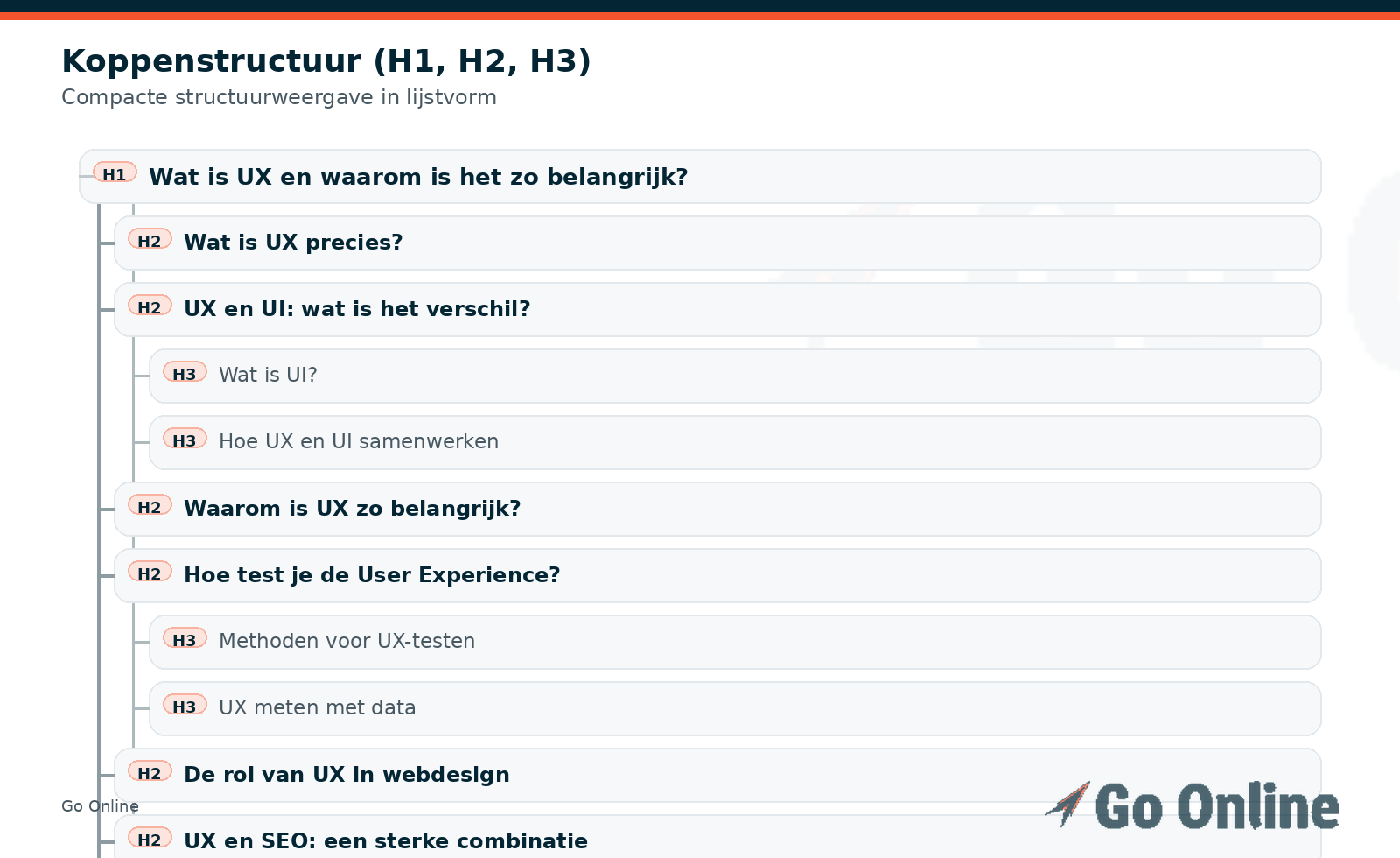 • hebben een duidelijke opbouw met H2 en H3’s die het onderwerp afbakenen