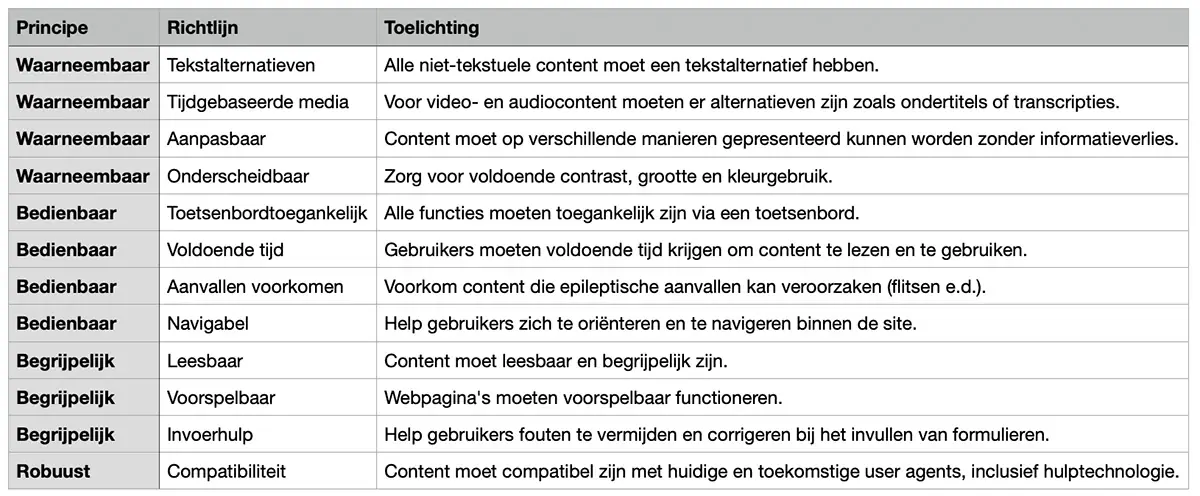 - Robuustheid: stelt dat de content van je website compatibel moet zijn met huidige én toekomstige technologieën.